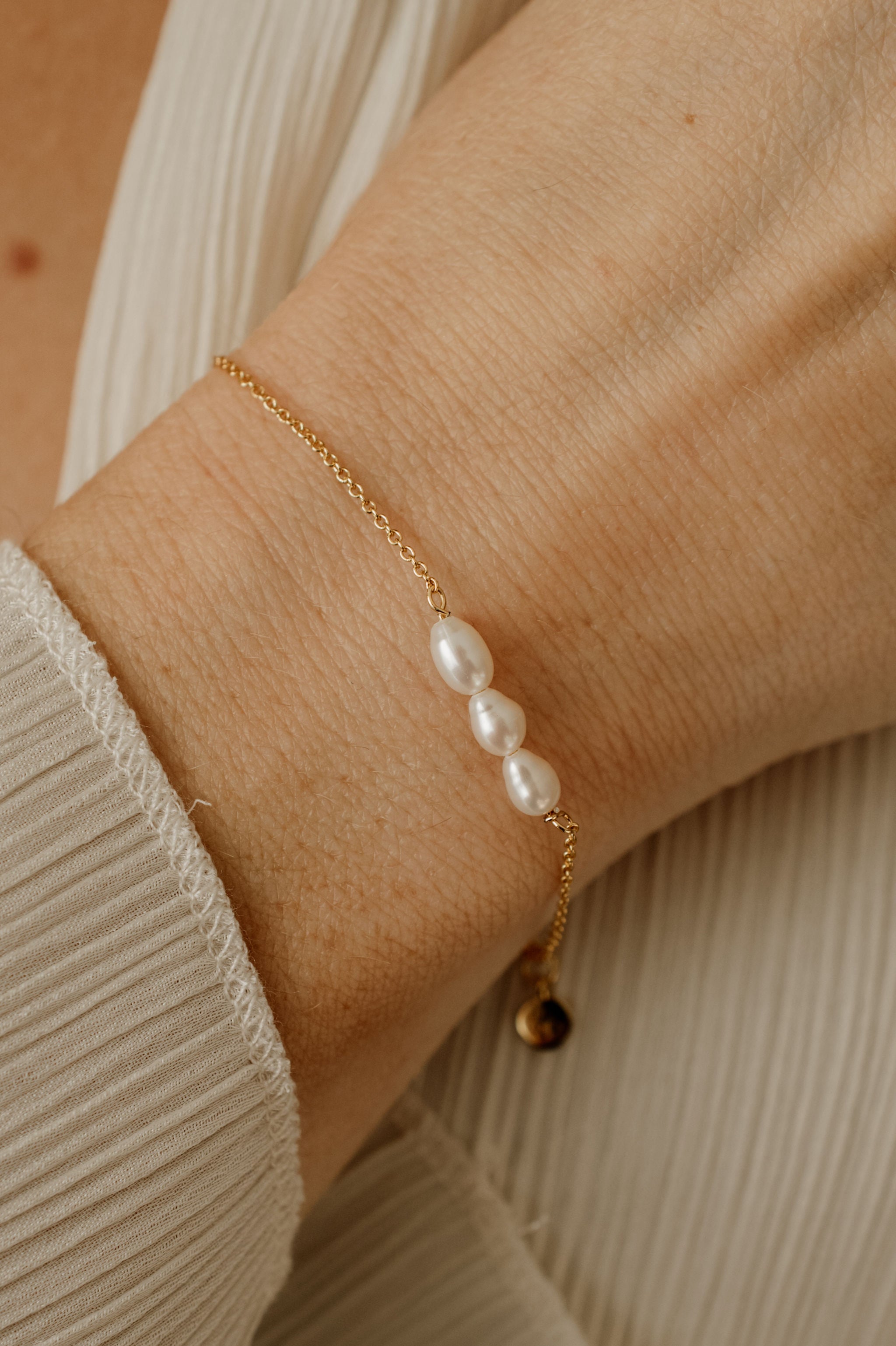 Serenity - Features a bar of three tiny freshwater rice pearls on your choice of sterling silver or 14k gold filled 1.5mm chain.