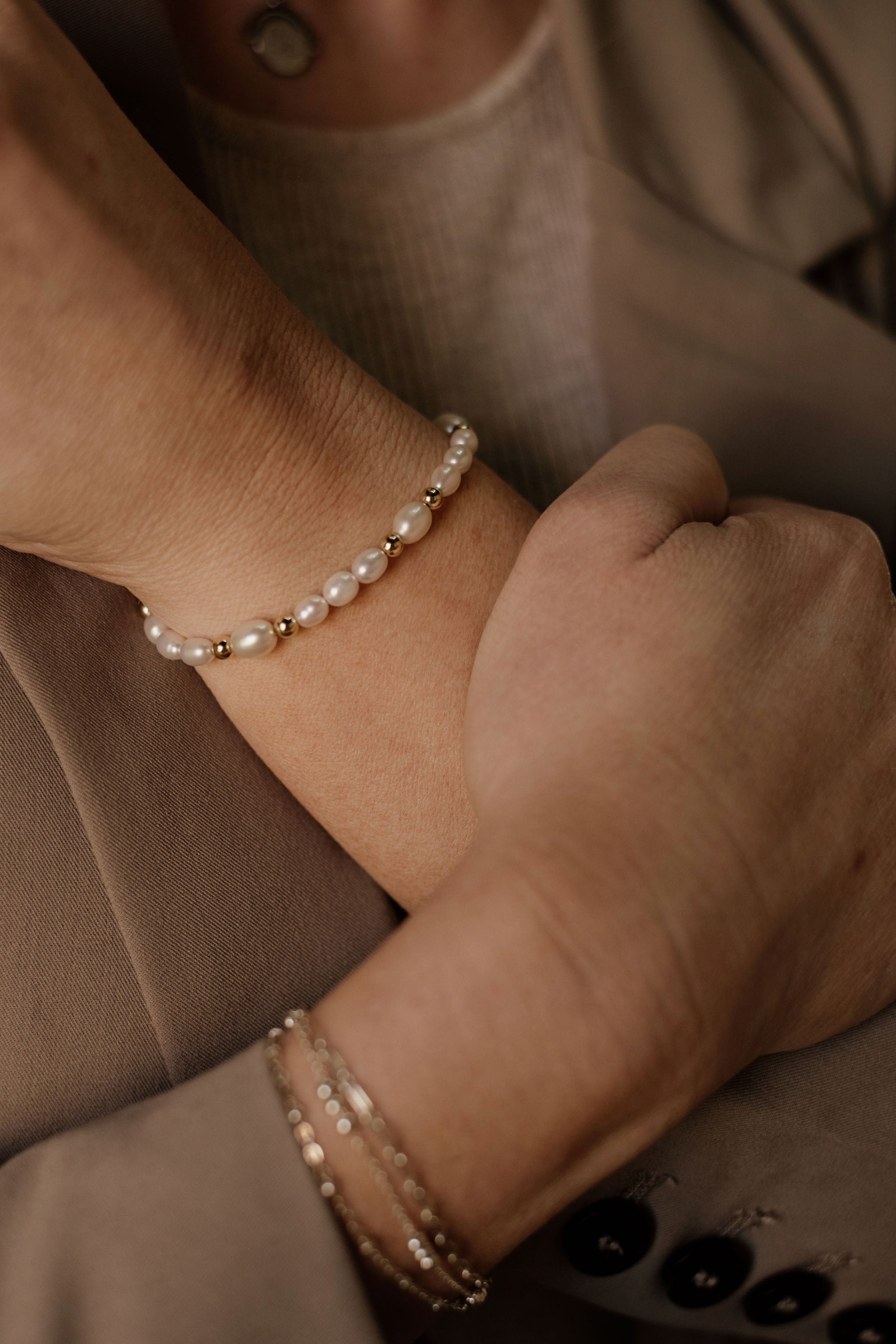Elevate your style with our Stacey bracelet, a perfect blend of classic elegance and modern sophistication. Crafted with attention to detail, this bracelet features lustrous freshwater pearls delicately interspersed with polished sterling silver or 14k gold filled beads, creating an eye-catching contrast that exudes timeless charm.
