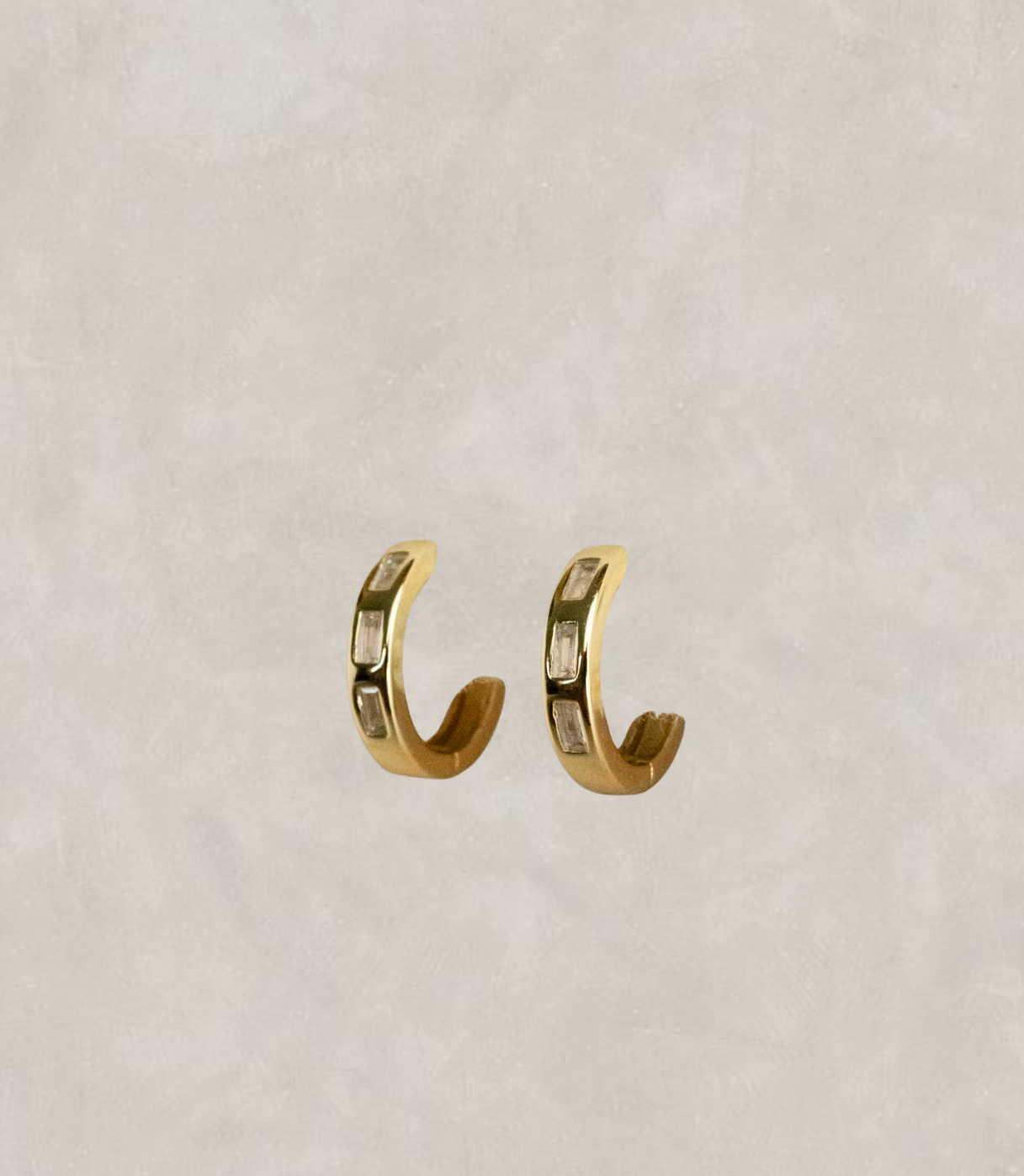 The unique baguette accents add a modern twist, creating a striking contrast against the radiant gold. Whether you're dressing up for a night out or adding flair to your everyday look, these versatile hoops are the perfect choice.