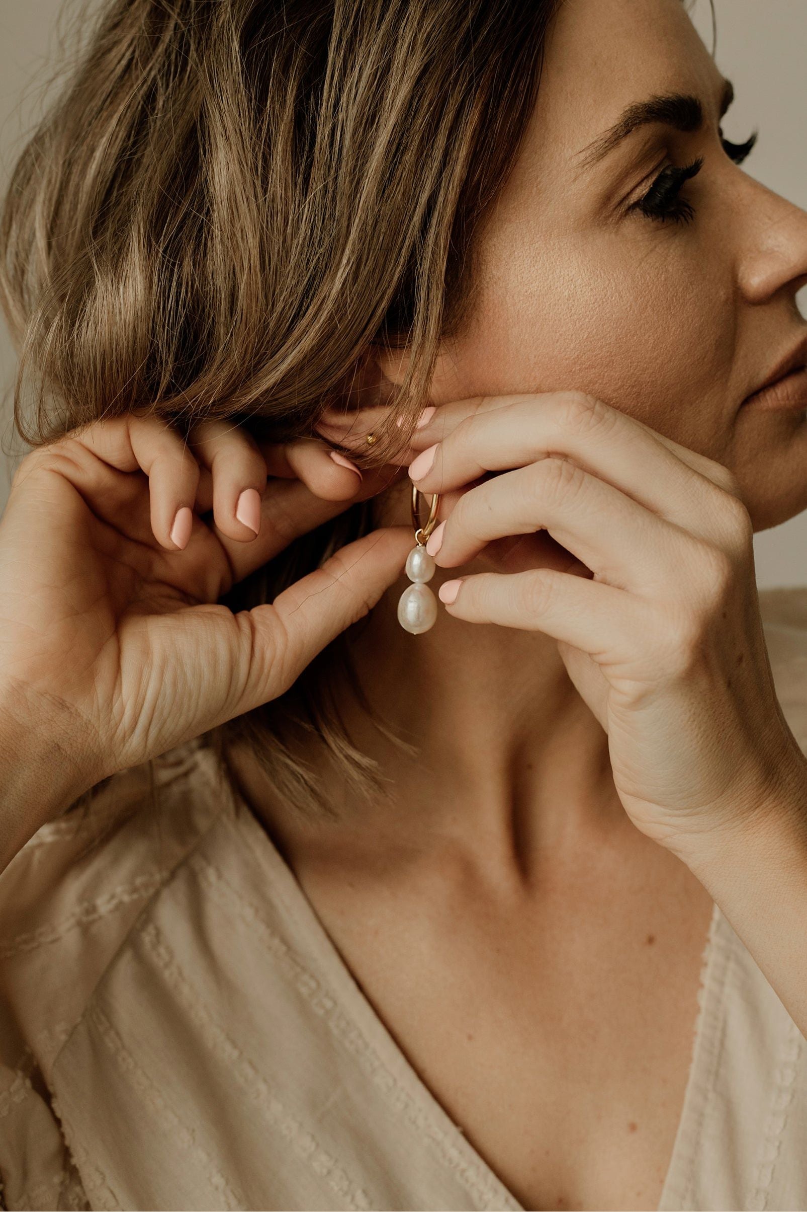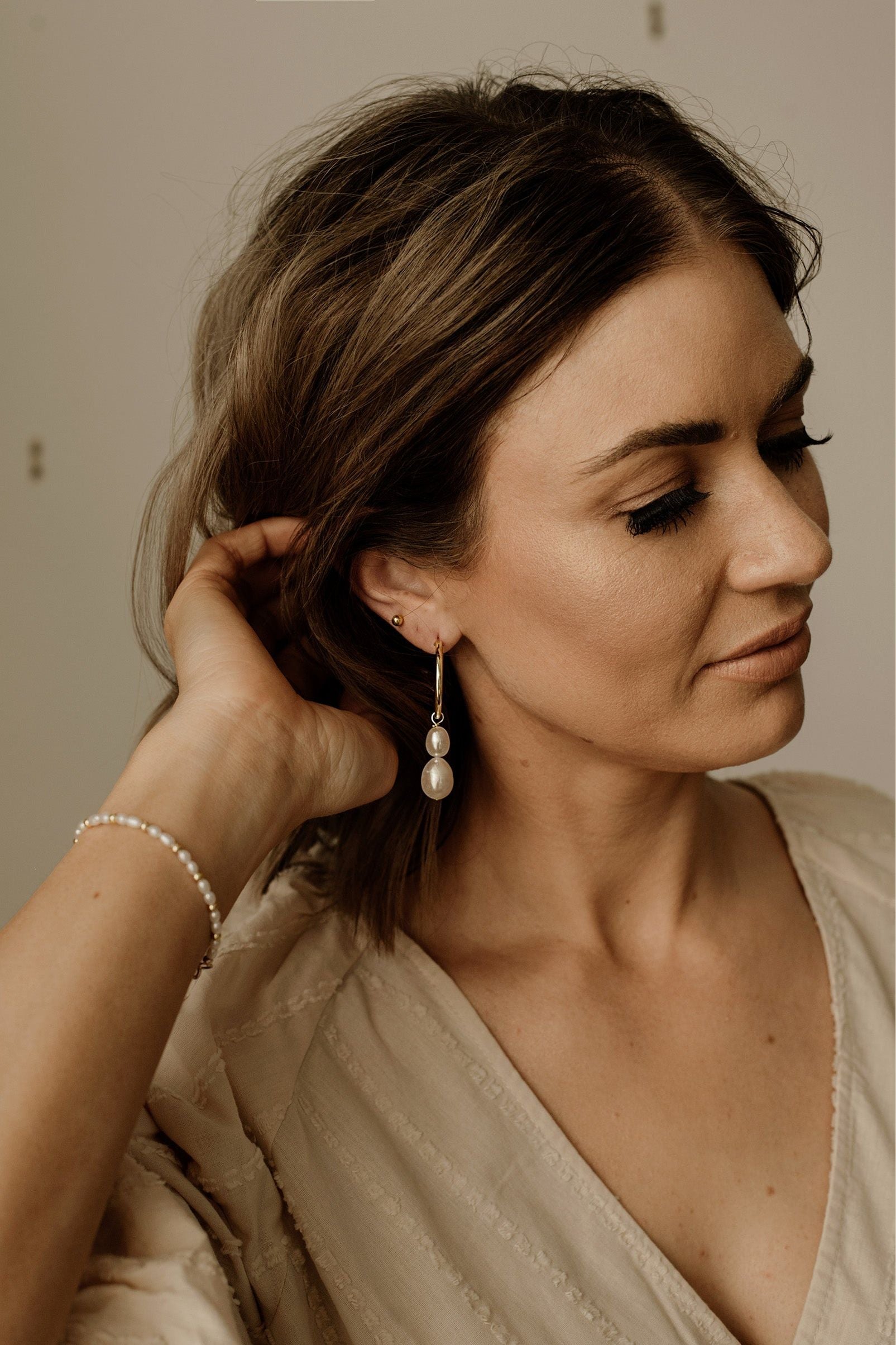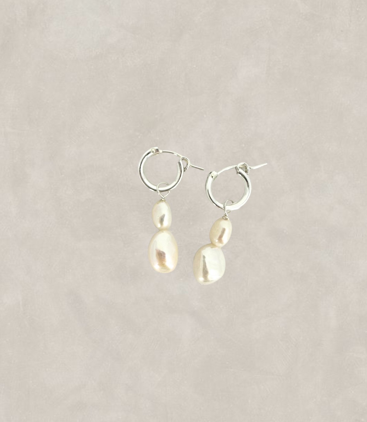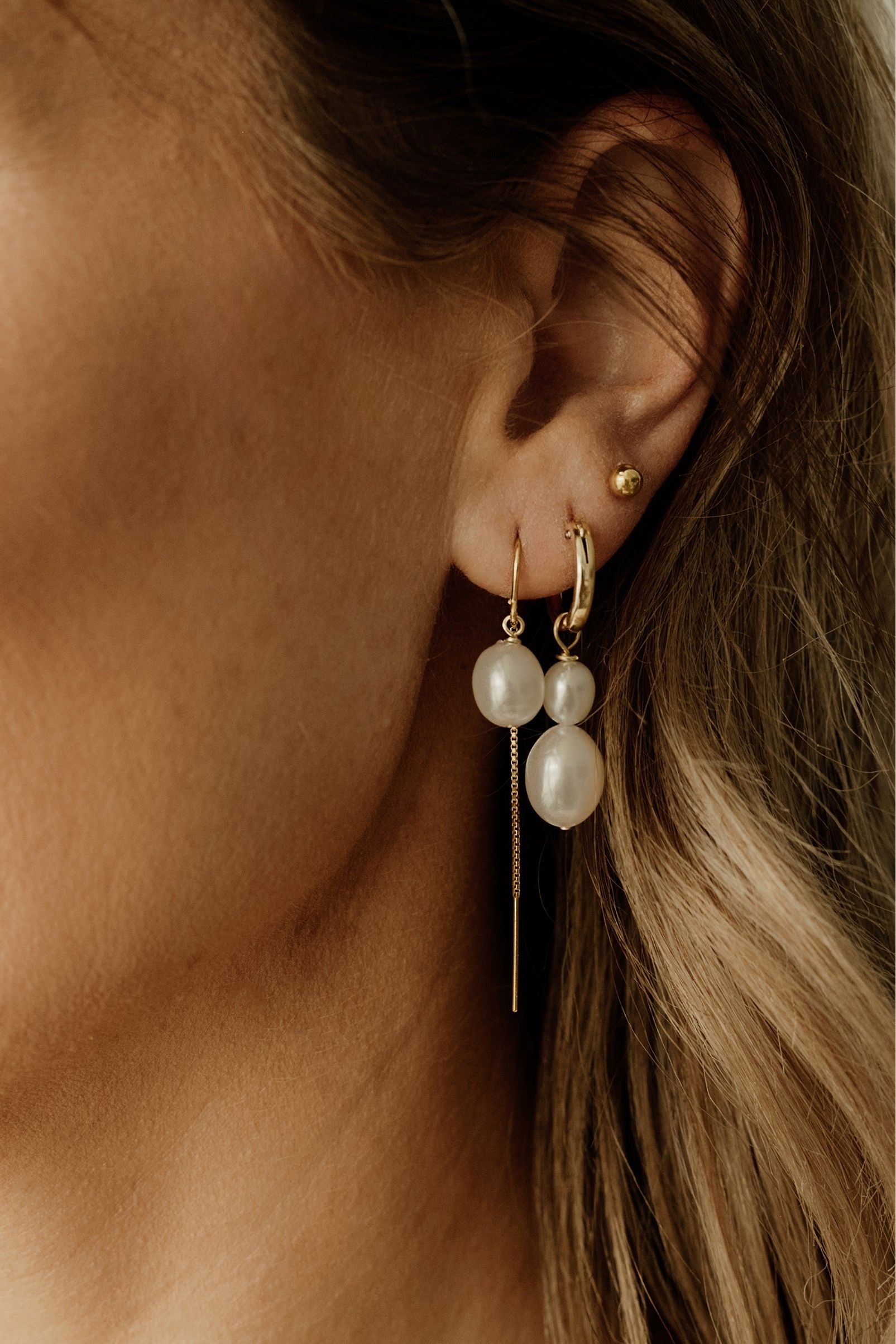 Sweet Tully - Popular with the brides. Three sizes - Baby-13mm, Small-18mm featuring a small and medium sized irregular baroque pearl. A perfect understated but interesting piece.