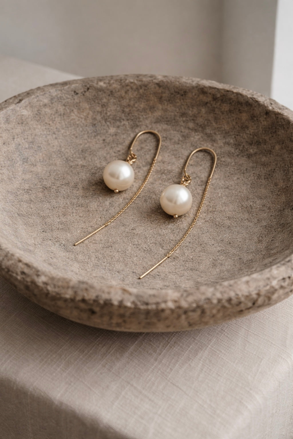 Valentina - Large freshwater baroque pearl hung in sterling silver or 14k gold filled u-bar thread earring. Match back with our Vera bracelet, anklet and necklace.