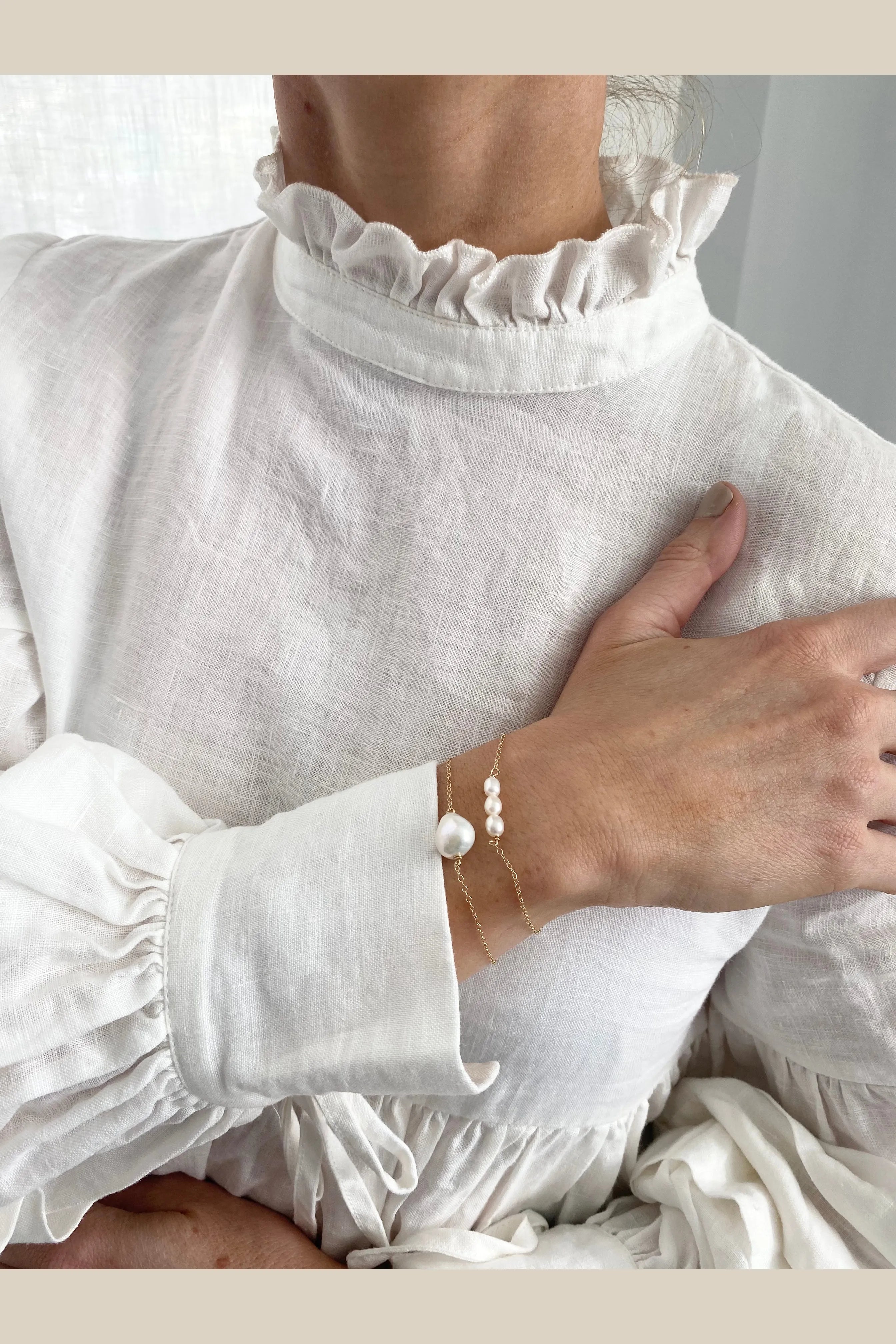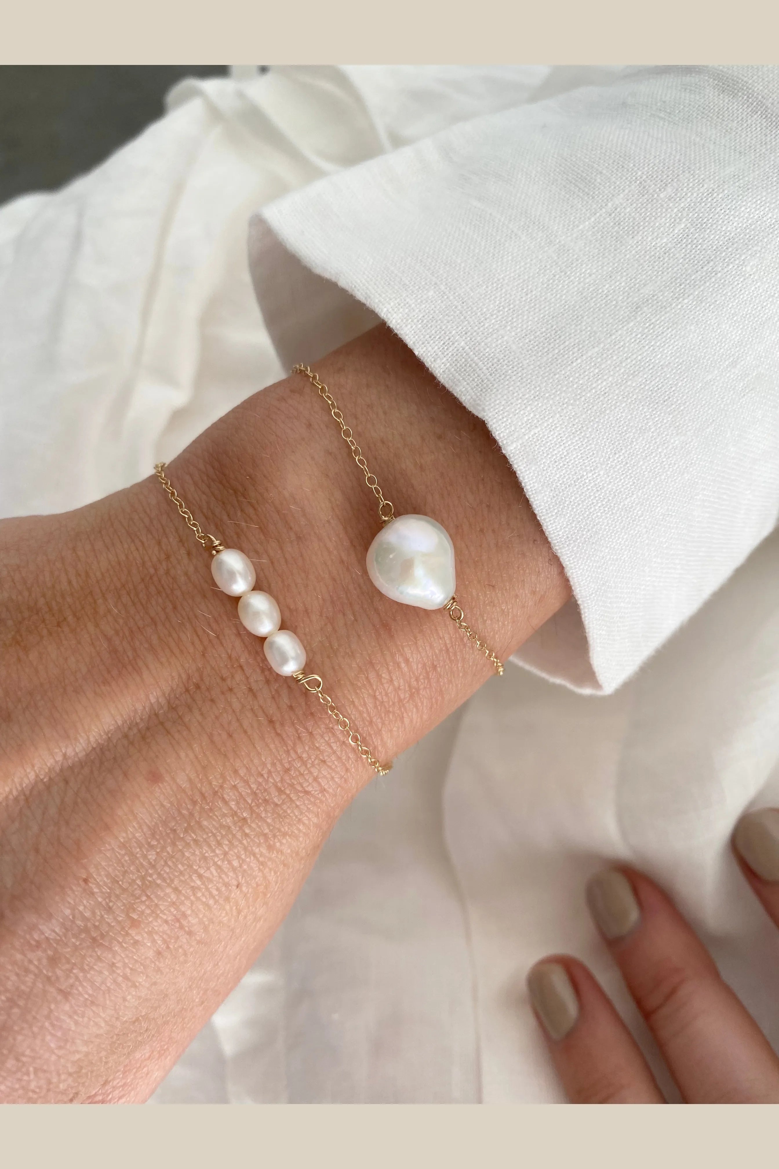 Vera Bracelet - Medium freshwater baroque pearl floated on your choice of sterling silver or 14k gold filled 1.5mm chain.