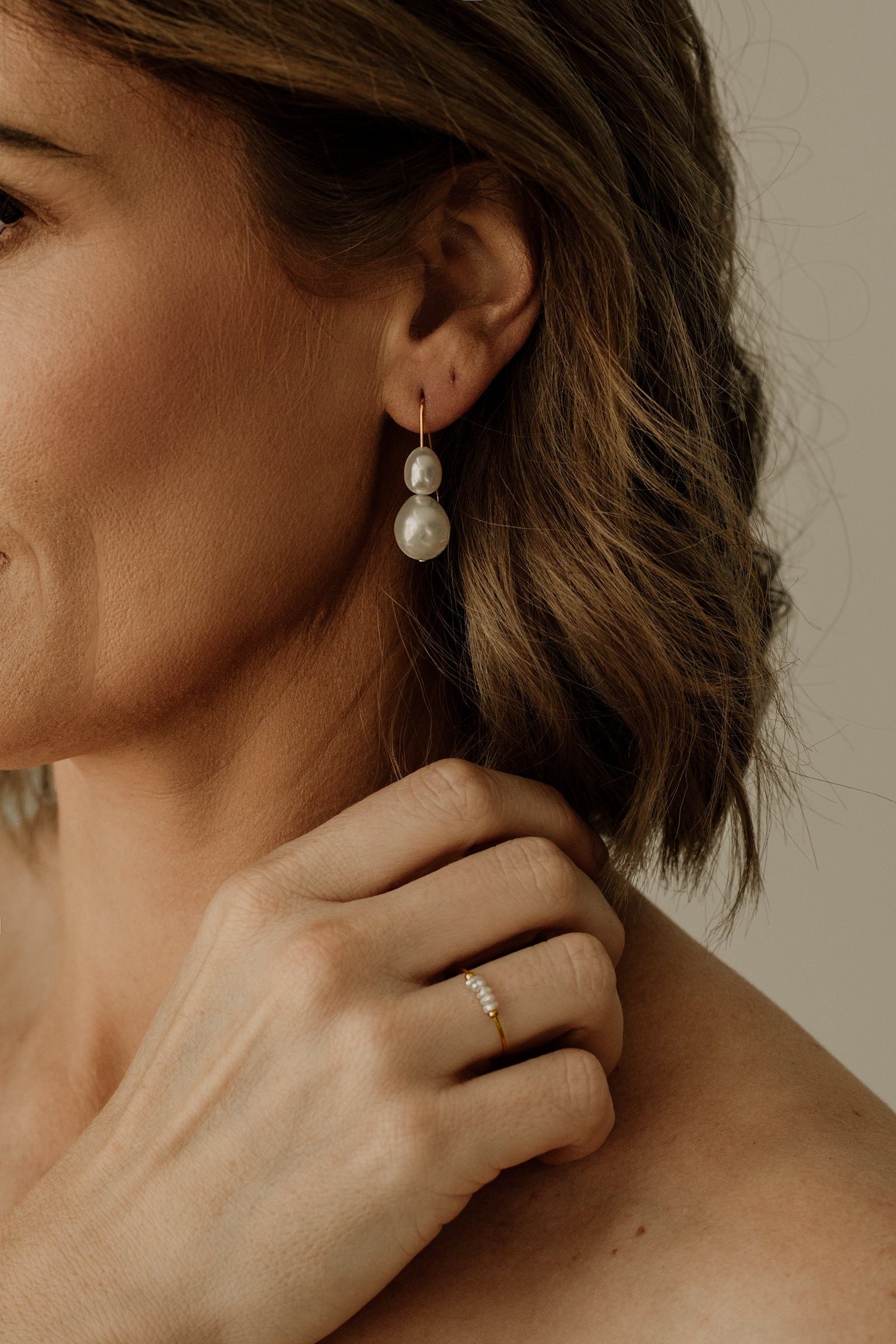 Elevate your look with Wila. Easy wear taking you from your day to night look in an instant. Willa features a 14k gold filled, rose gold filled or sterling silver wire hook with two different irregular sized freshwater baroque pearls.