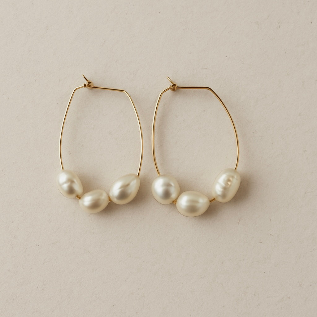Wilma is oh so stunning with her large 3 irregular freshwater baroque pearls strung onto each hoop with your choice of 14k gold filled, rose gold filled or sterling silver wire. Such a stunning piece these ones. Approx 4cm wide x 5.5cm drop.
