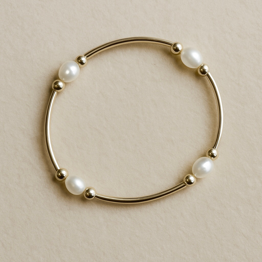 Elevate your accessory game with our stunning pearl and gold stretch cord Bracelet. This exquisite piece effortlessly combines the timeless elegance of pearls with the modern allure of 14k gold filled/ sterling silver accents.